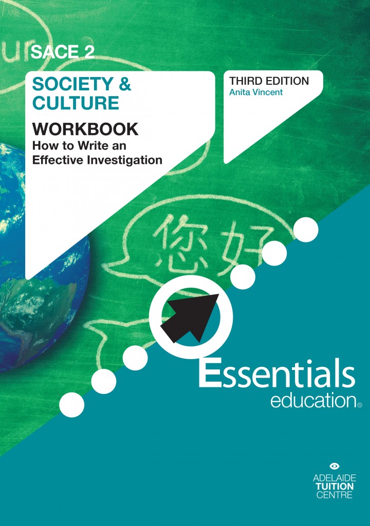 The Essentials Workbooks are designed to support the teaching of SACE Stage 1 and 2 subjects in South Australia. The SACE 2 Society & Culture Workbook provides a step-by-step guide to the investigation component of the SACE Stage 2 Society & Culture course.